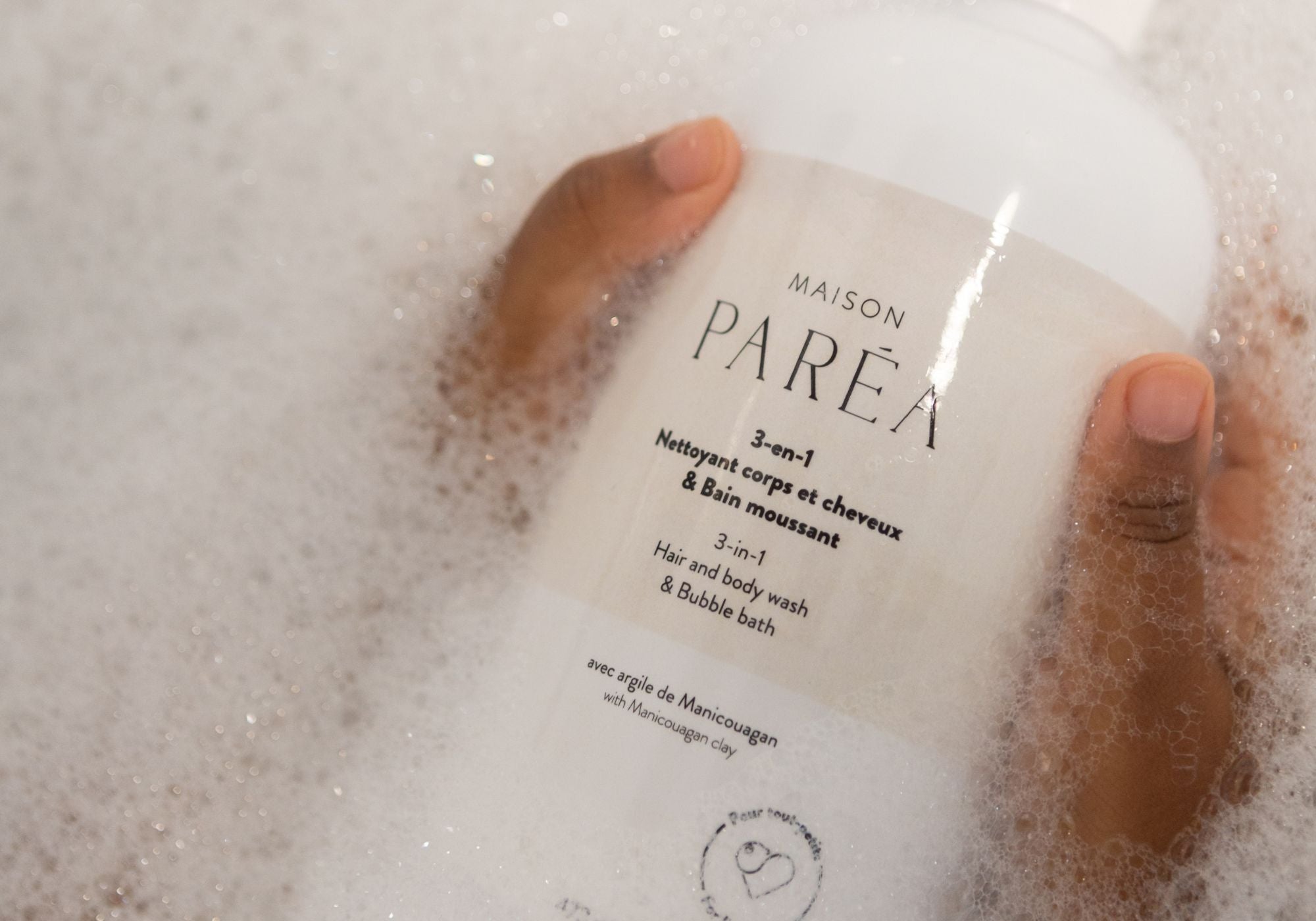 Découvrez notre nouveau 3-en-1 nettoyant corps et cheveux & Bain moussant