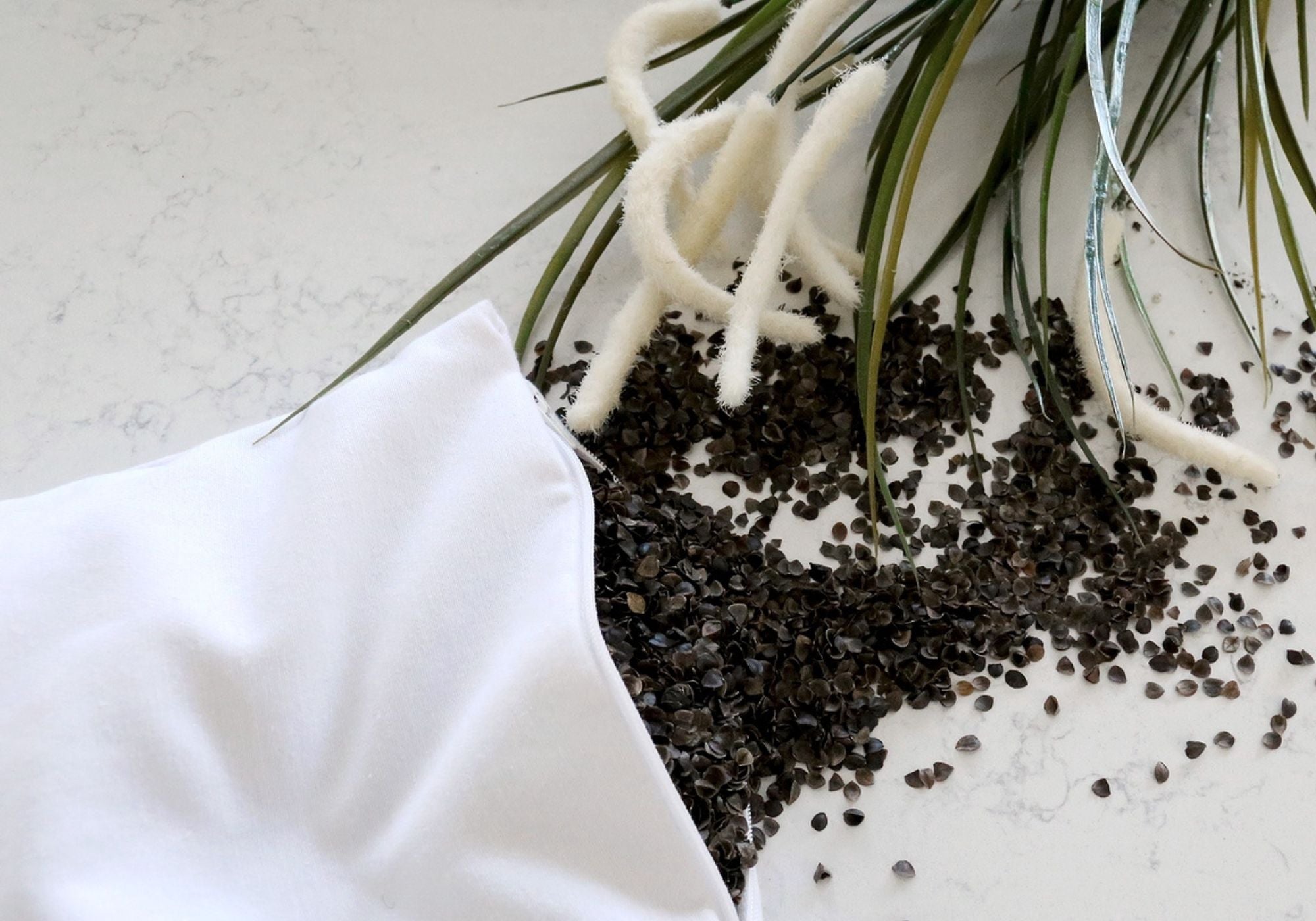 1. Oreillers : Vider entièrement l'oreiller de ses écales avant de le mettre à la laveuse. Sécher à basse température ou étendre.